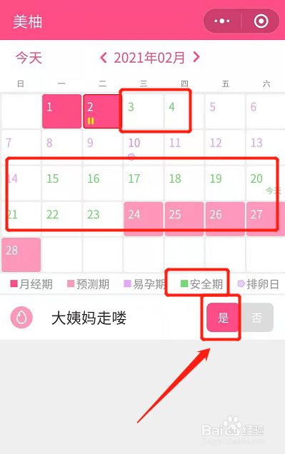 再点击月经竣事的那天。