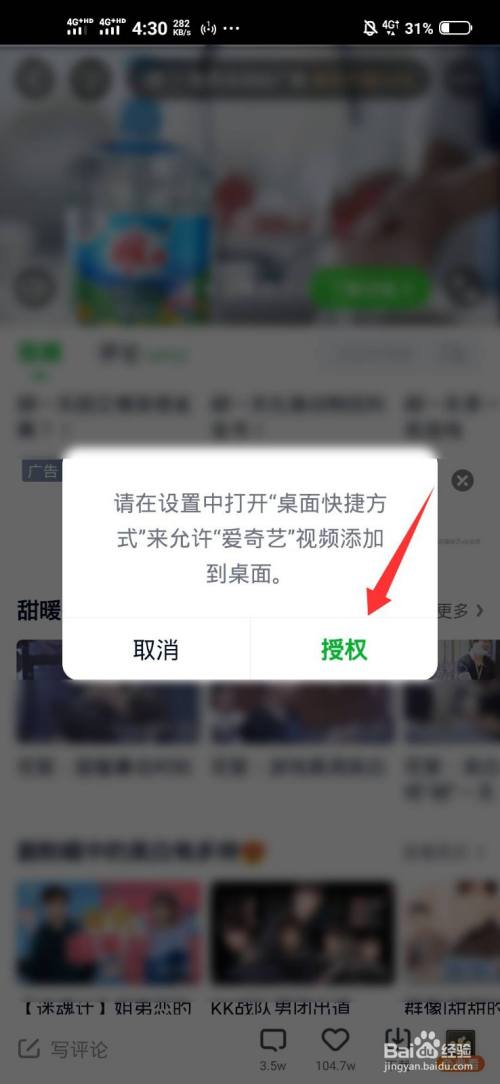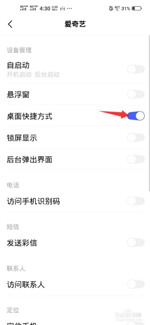 将爱奇艺选项下桌面快捷体例后面的开关打开。