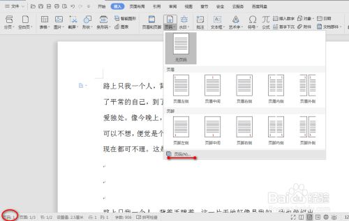 将光标移动到下一节的页面中,并按照图示插入页码,具体如图所示: