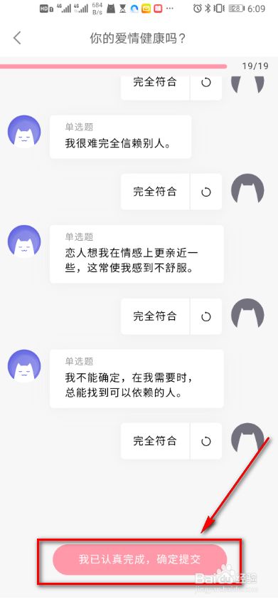 进入测试界面,进行当真回覆,完当作后,点击底部粉色图标。