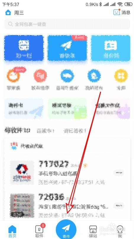 首先在手机上打开菜鸟裹裹,然后点击本家儿界面底部的寄件按钮。