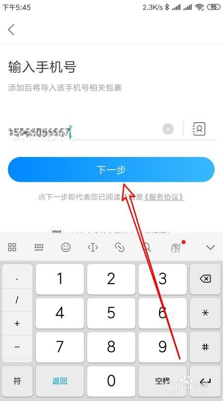 接着在打开的页面输入家人的德律风号码点击下一步按钮。