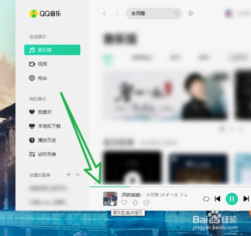 音乐起头播放之后,点击睁开歌曲详情页。