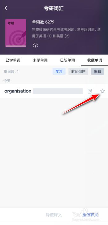 找到要打消保藏的单词,点击后面的五角星,变为白色即可打消保藏。