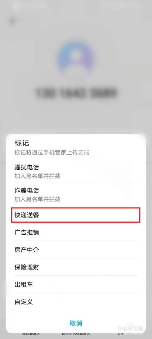 选摘要标识表记标帜的名称,例如点击【快递送餐】。