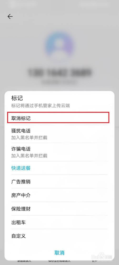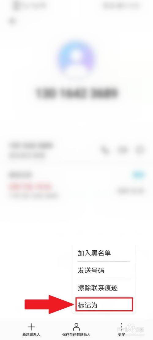 打开通话记实,找到要标识表记标帜的号码,点击右侧的【¡】。
