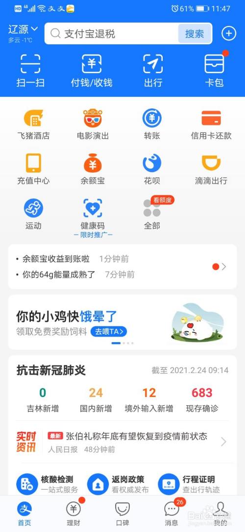 我们点击进入到支付宝的本家儿界面,然后点击一下右下角的我的选项卡。