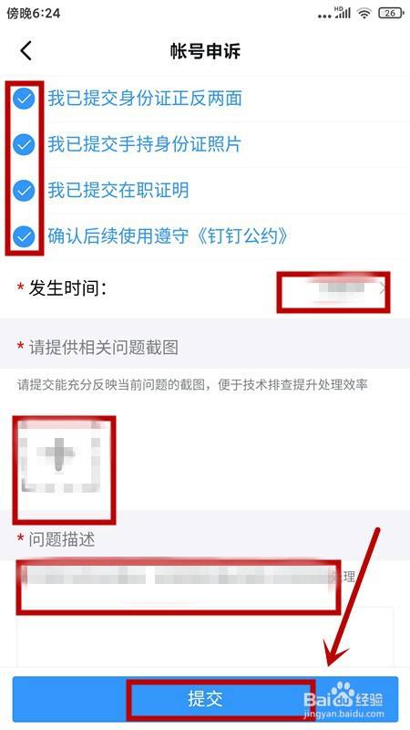 进入【账号申诉】页面后,按照提醒补齐响应内容后,点击【提交】即可