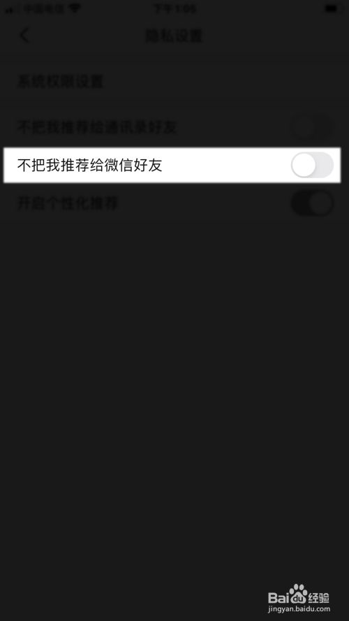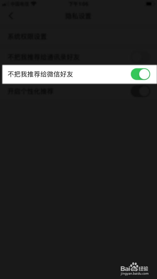 点击不把我保举给微信老友的选项后方的开关。