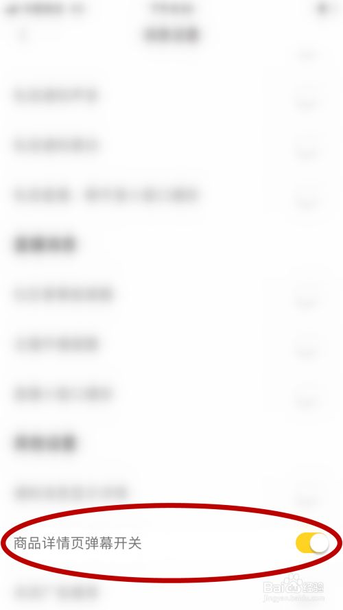 在设置中,点击商品详情页弹幕开关的选项右边的开关。