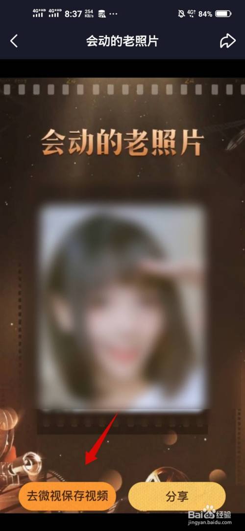 合当作完毕之后显示的照片会眨眼微笑,点击保留即可。