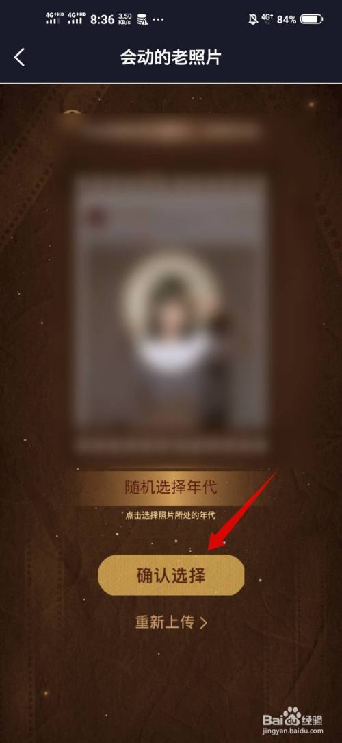 在屏幕上摆布滑动,找到穿越光阴的微笑模板,点击利用。