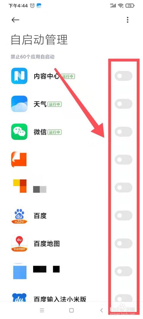 进入“自启动办理”界面,选择需要主动启动的APP,将小圆球拖拽的最左边,即可完当作操作。