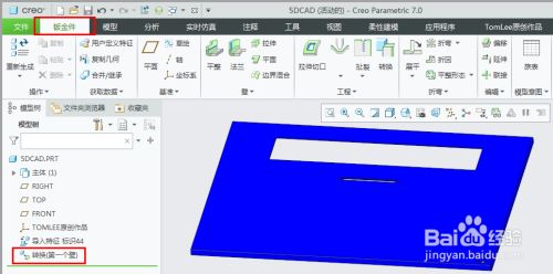 完当作转换操作后,导入实体模子就转换为钣金零件,呈现钣金件选项卡,可以建立钣金特征。