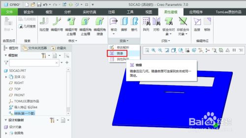 在creo模子上选择一个基准平面来作为镜像平面。