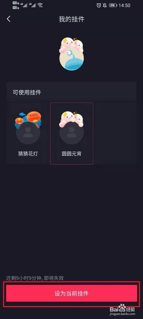 点击底部弹出的【设为当前挂件】,设置完当作。