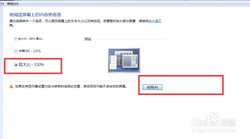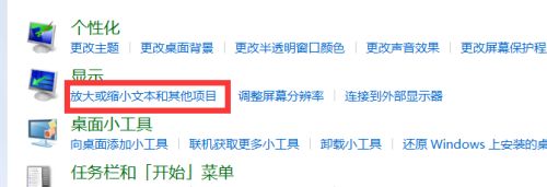 在外不雅和个性化一栏中,选择“放大或缩小文本和其他项目”打开,如下图