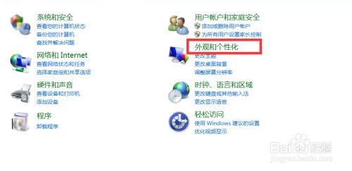 在节制面板窗口中点击“外不雅和个性化”一栏打开,如下图