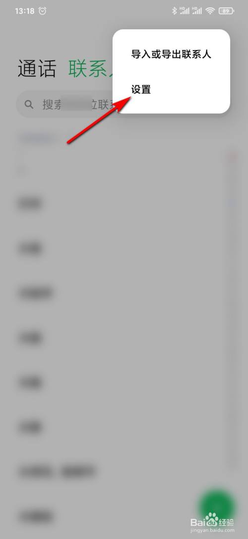 打开手机的“联系人”,并点击右上角箭头所指处。
