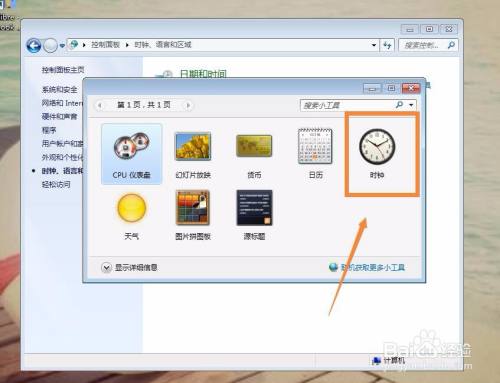 点击进入【时钟、说话和区域】模块,在此中可以看到【标的目的桌面添加时钟小东西】的选项。