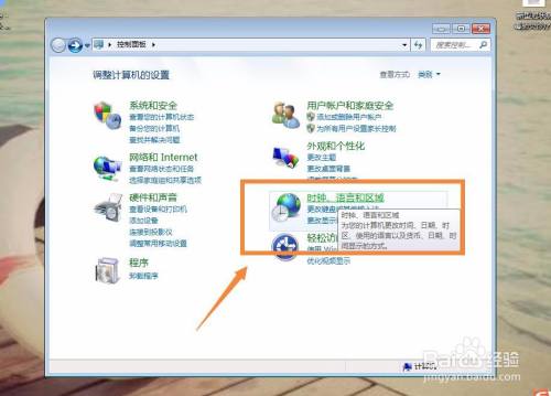 在【节制面板】窗口中找到下图中框选的【时钟、说话和区域】。