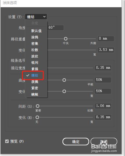 6.选择涂抹之后,在弹出的对话框中选择缠结。