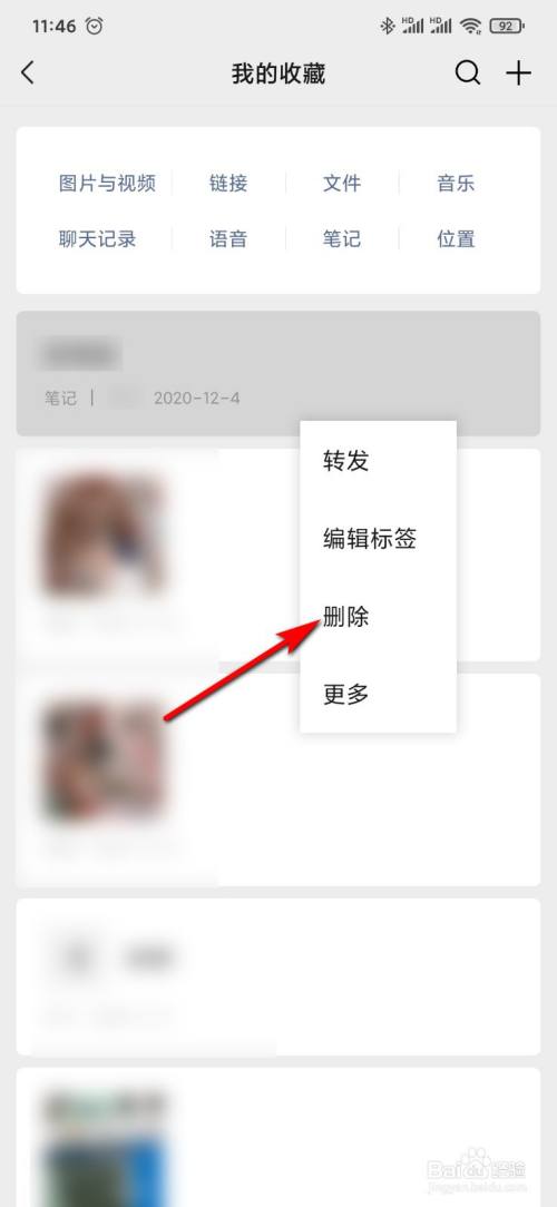 点击长按一个已经保藏的项目。