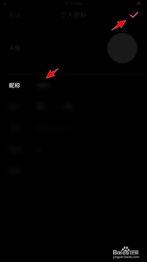 点击昵称的选项,在昵称后方文本框中输入新昵称内容后,点击右上角打钩的图标即可点窜昵称。