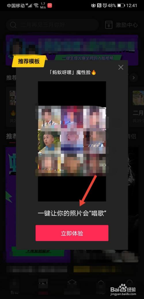 然后再点击体验“蚂蚁呀嘿”魔性脸功能;