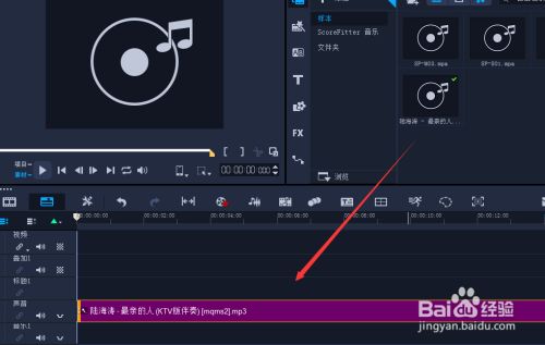 将音频素材拖拽到声音轨。