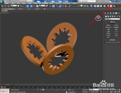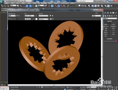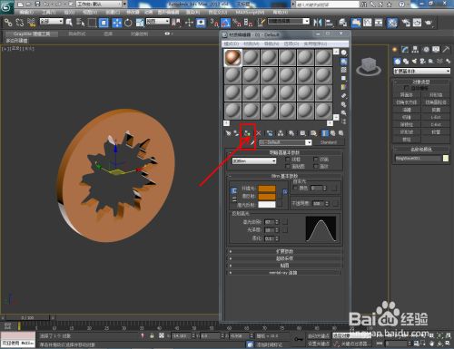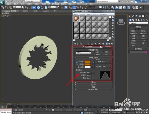 点击【材质编纂器】弹出材质编纂器设置栏后,按图示设置好一个金属材质球并附加给环形波模子;