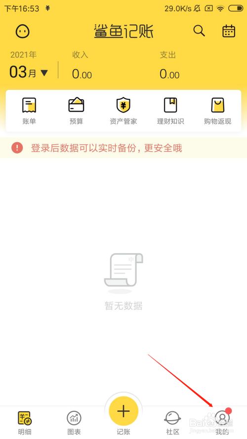 打开鲨鱼记账app之后,点击右下角我的。