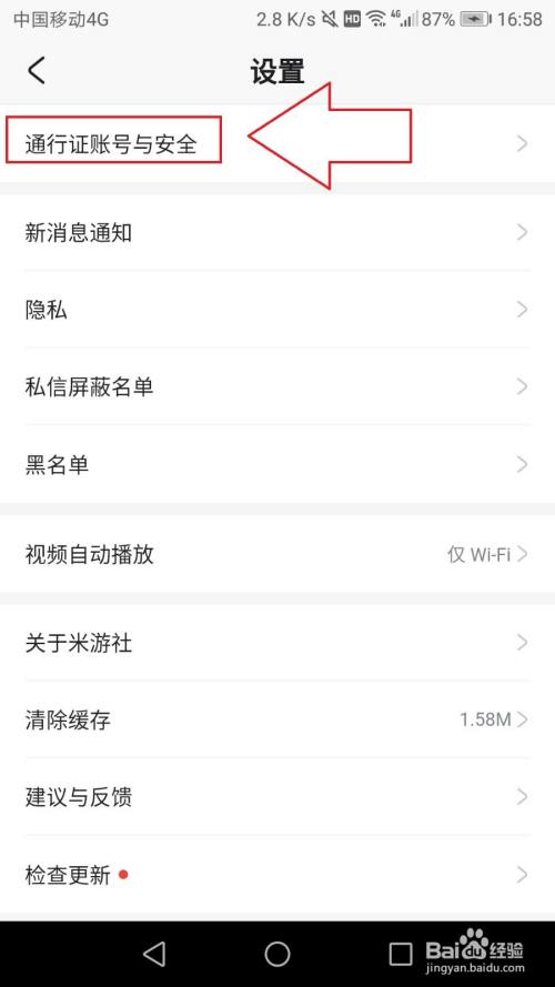 点击通行证账号与平安。