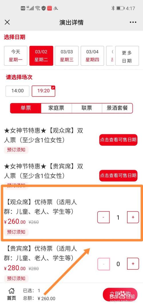 选择日期、场次、看到儿童优待票,填写数目,点击【当即订购】