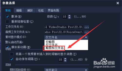点击“素材显示模式”的下拉菜单。