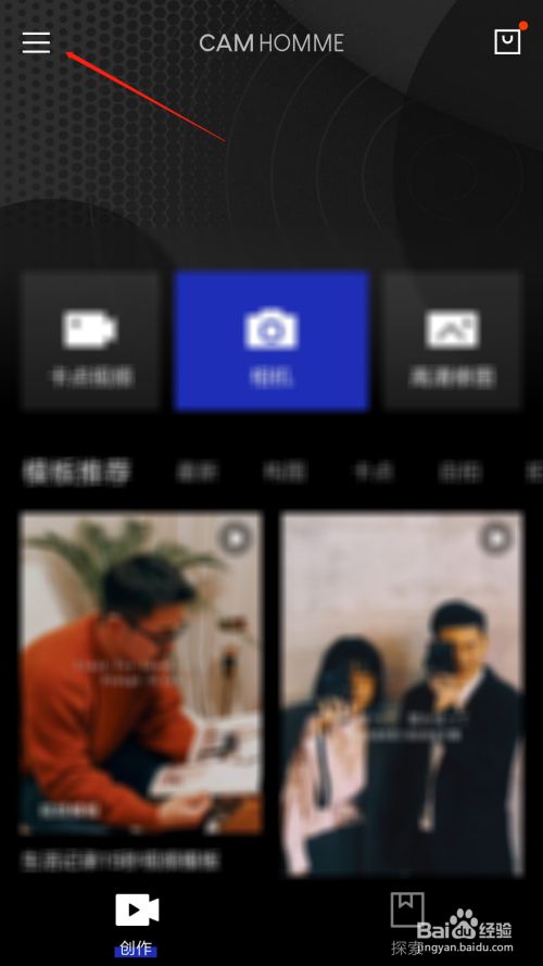 打开型男相机之后,点击右上角的三条横杠按钮。