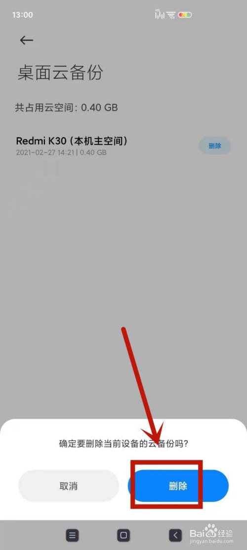 3.点击桌面云备份,再点击页面的删除。