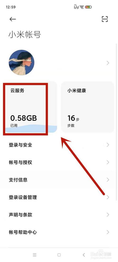 打开手机设置,点击小米帐号。