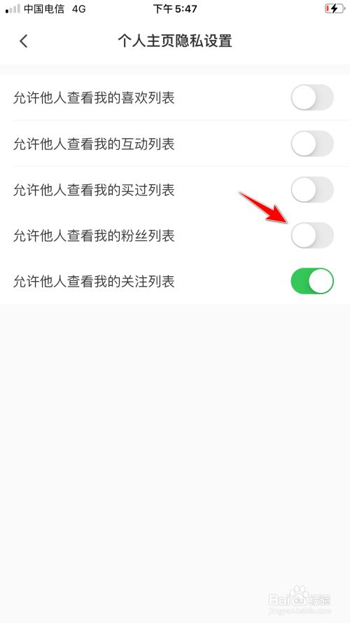 点击许可他人查看我的粉丝列表的选项后方的开关。