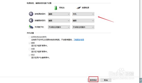 在按电源按钮时,我们可以设置为关头,再点击保留点窜按钮即可。