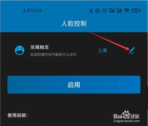 第七步,开启后有一个笑脸,此时打开抖音,张嘴即可主动翻页