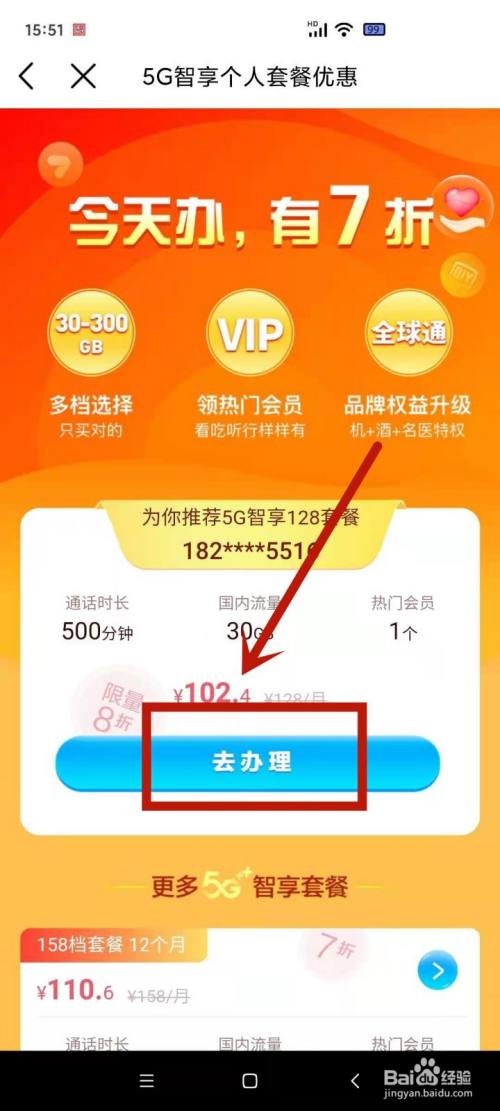 点击进入本身当前的套餐。