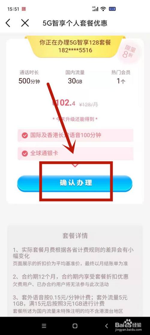 查对信息,点击确认打点,即可改换套餐。
