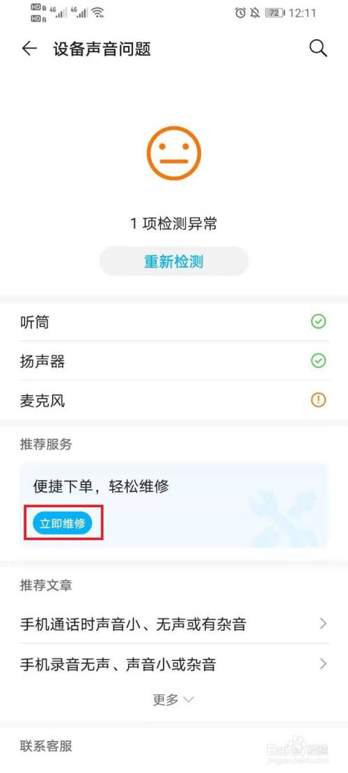 点击【设备声音问题】,系统会依次检测听筒、扬声器和麦克风,按照系统提醒进行操作。