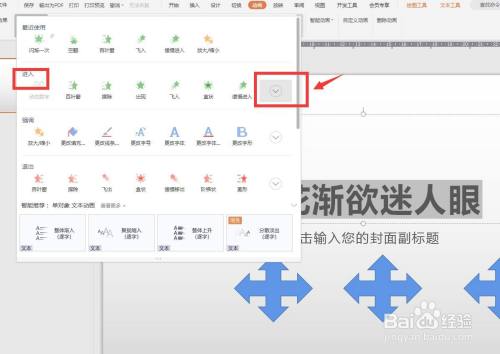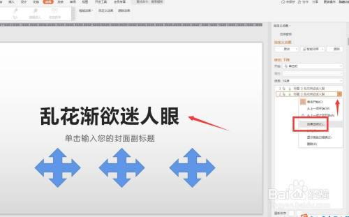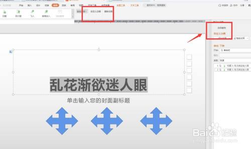点击功能区有一个自界说动画,可以在右侧打开面板。