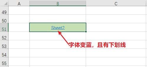 此时,单位格B51中内容的字体酿成蓝色且有下划线,暗示超链接设置当作功。