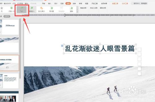 选择文字,点击动画选项卡,在左上角选择一种动画类型,好比飞入。