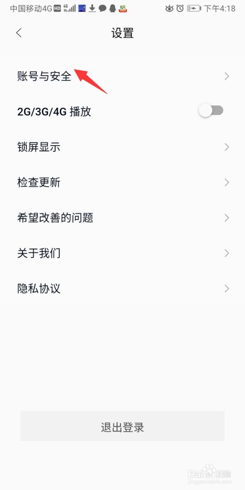 在设置中选择账号与平安进入