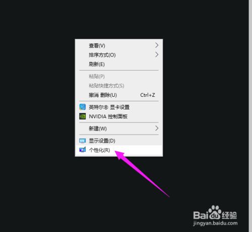 在桌面空白处,单击鼠标右键,点击个性化。