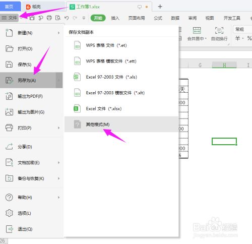 在WPS中打开excel文档,点击文件-另存为-其他格局。